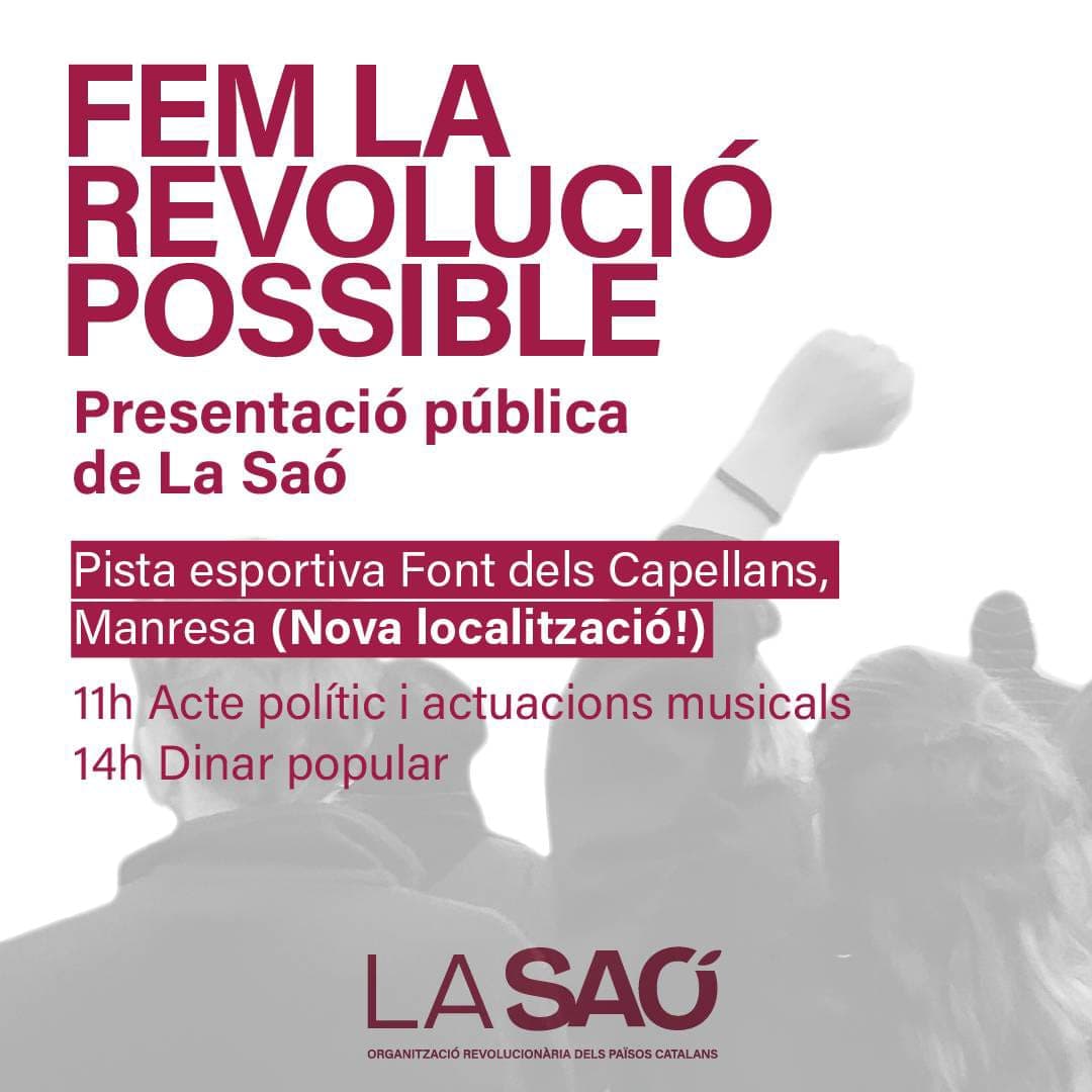 Hem pres la decisió d’organitzar-nos a La Saó perquè veiem imprescindible la unió d’una estratègia i una pràctica revolucionàries, que arrelin en cada militant, a cada projecte, a cada territori, fent indissociables la vida i la lluita.